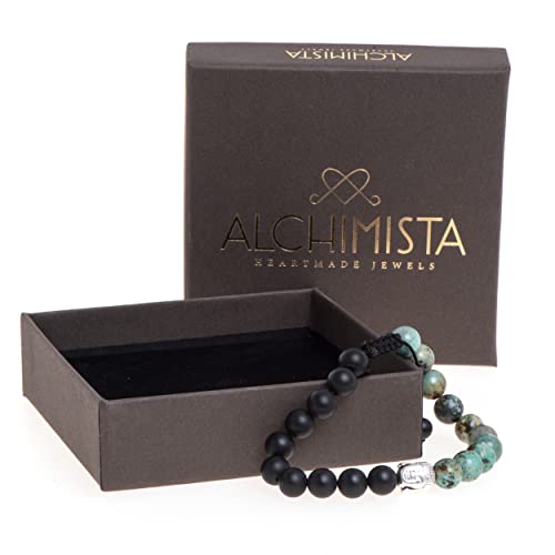 Alchimista Jewels Bracciale Regolabile Uomo Donna Unisex Con Perline Di Pietre Dure Naturali Di Onice e Turchese Africano 8mm Con Scatola Regalo Di Alta Qualità Realizzato In Italia