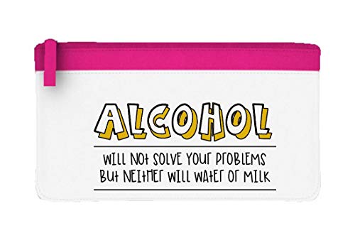 Alcol non risolve i problemi ma nemmeno un latte Statement Funny Drinking Gift Flat Pencil Case Misura unica Pink