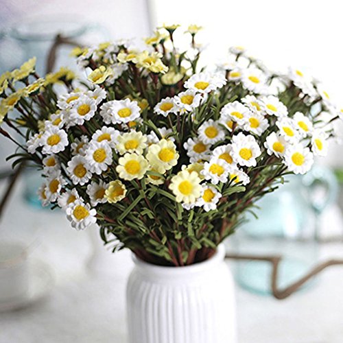 Alcyoneus, margherite artificiali, in simil seta, 8 boccioli, decorazione per casa, matrimonio e feste White