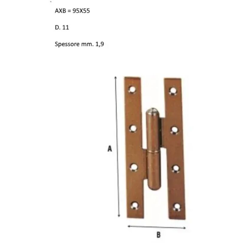 In ferro. Tipo diritto. Altezza 95 mm Larghezza 55 mm Versione SX
