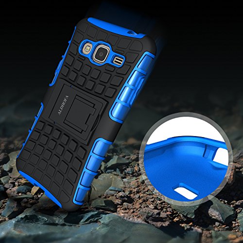 ALDHOFA Cover Samsung Galaxy J3 2016, Doppio Strato a Ibrida Phone Caso per Samsung J3 2016-Blu
