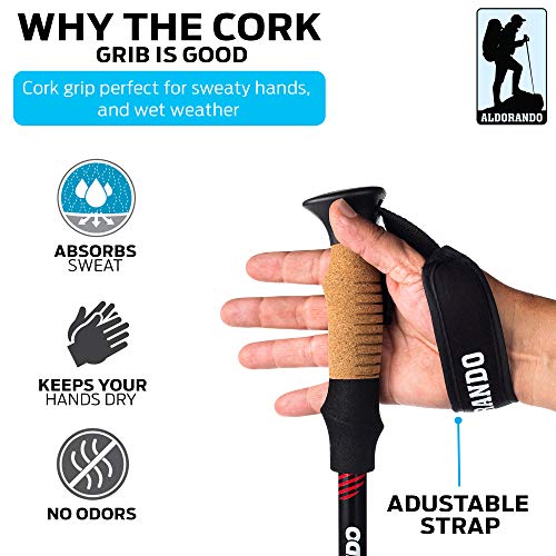 ALDORANDO Bastoncini Trekking - 2 Pack bastoni telescopico Resistenti e Leggeri di Alluminio 7075 - Manico in Sughero - Racchette Trekking Perfetti per la Montagna, Trail Running, Nordic Walking