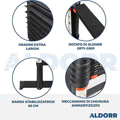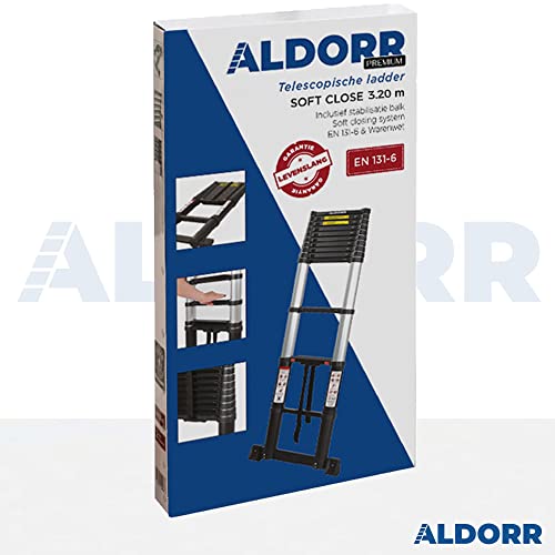 ALDORR Professional 3,20M Scala Telescopica in Alluminio con barra Stabilizzatrice | Scala Telescopica Retrattile Multi Funzione | Carico Massimo 150 kg | Meccanismo Soft-Close (EN131)