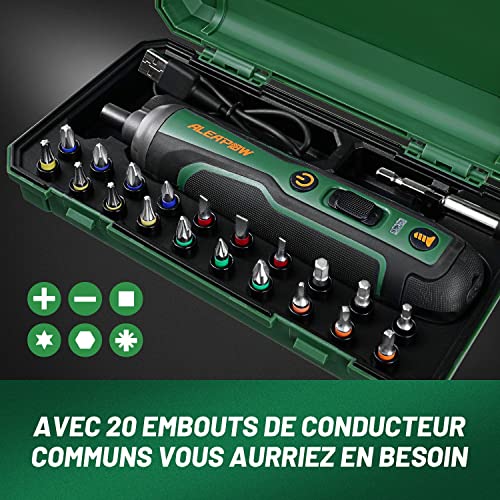 ALEAPOW Avvitatore a batteria 3,6 V, avvitatore a batteria 5Nm, batteria agli ioni di litio 2,0 Ah, 3 indicatori LED, 20 punte per cacciavite, cavo di prolunga 1/4", tipo C ricarica - O1Pro
