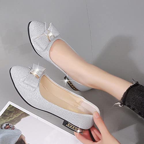 Alecony Scarpe eleganti da donna, comode, con punta chiusa, con fiocco con strass, tacco basso, scarpe da corte con glitter, per matrimoni, balli, serate, feste, eleganti