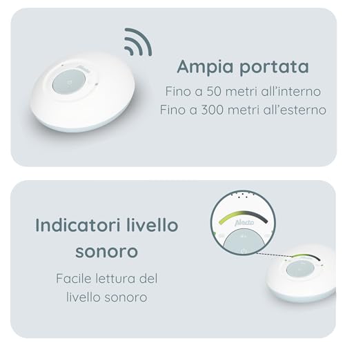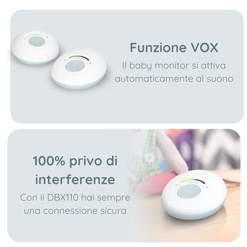 Alecto DBX110 Babyphone Audio - Babymonitor digitale con DECT - 300 m - design compatto - scala del volume LED - funzione VOX - bassa radiazione - bianco