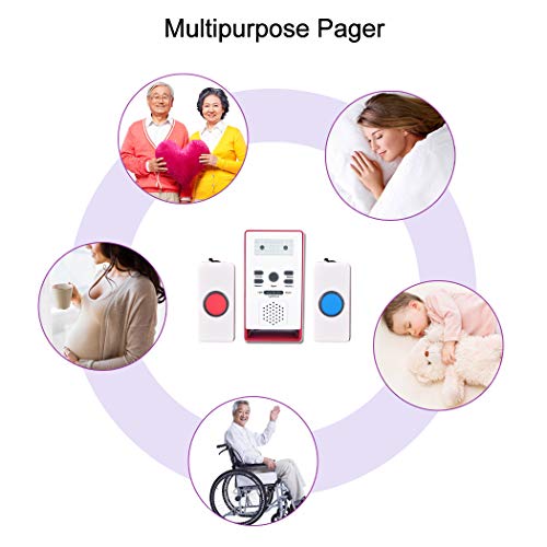 5, ampiamente usato per anziani, bambini, portatori di handicap, donne in gravidanza o pazienti al coperto e all'aperto, può anche essere usato come campanello. Indicazione di batteria scarica. Ricevitore alimentato da 3 batterie AAA (non incluse);
