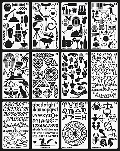 Aleks Melnyk Journal Stencil Plastic/36 PCS Planner Set per Journal/Forniture/Diario/Notebook/Scrapbook Disegno Fai da Te/Alfabeto, Lettera, Numero, ABC/Template Stencil diario 4x7 Pollici