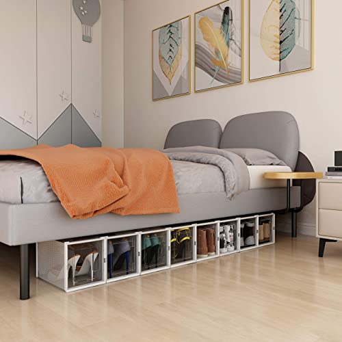 ALEMOK Scatole per scarpe trasparenti, impilabili, confezione da 8 scatole portaoggetti in plastica e pieghevoli, ideali per tacchi alti, stivaletti