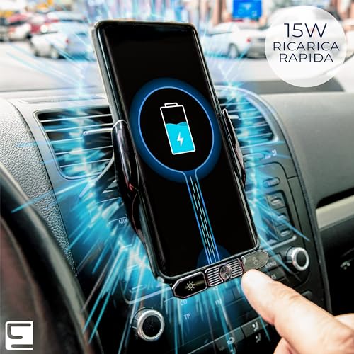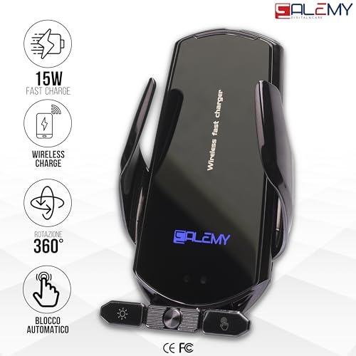ALEMY DIGITAL Caricatore Wireless Auto, Porta Cellulare Auto, Supporto Telefono Per Auto Universale Con Ricarica e Auto Bloccaggio Con Rotazione Di 360°