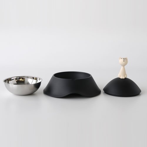 Alessi AMMI23 B Miò Ciotola per Gatti, Acciaio Inossidabile 18/10 Lucido/Resina Termoplastica, Nero