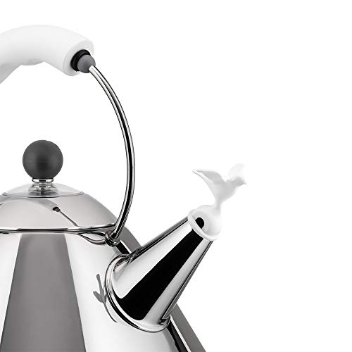Alessi 9093 W Bollitore di Design con Manico e Fischietto a Forma di Uccellino, Acciaio Inox, Bianco