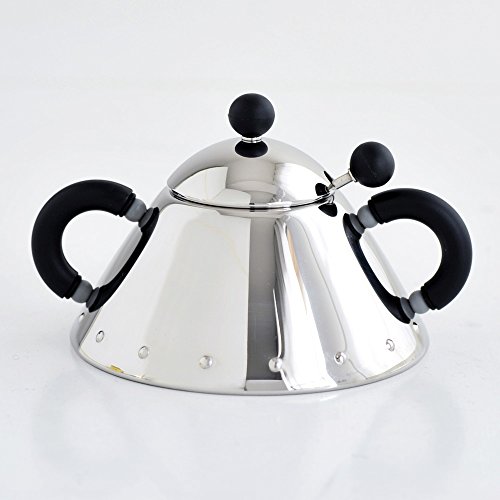 Alessi 9097 B Zuccheriera con Cucchiaino in Acciaio Inossidabile 18/10 Lucido, Manici e Pomolo in PA, Nero