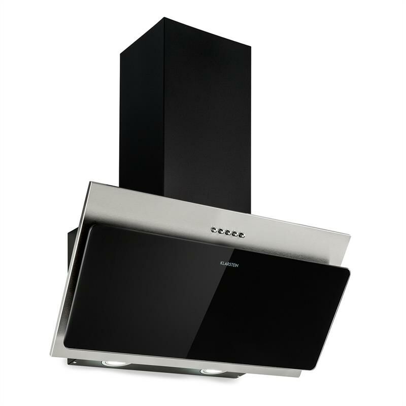 Aria pura in cucina: la cappa aspirante Alessia di Klarstein dà un tocco di splendore alla cucina ed elimina con slancio vapori e odori. La cappa inclinata Alessia, con 50 Watt di potenza, garantisce aria pulita in funzione di ricircolo per cucine di piccole e medie dimensioni. I tre livelli di potenza offrono una capacità aspirante fino a 350 m³/h e si adattano perfettamente alle singole necessità. Particolarmente pratica è la struttura inclinata della cappa, che permette libertà di movimento senza rischiare di sbattere la testa. La cappa occupa inoltre pochissimo spazio. Il pannello di controllo frontale permette di gestire facilmente la ventilazione e l'illuminazione LED attivabile a bassi consumi, ideale per avere sempre un'ottima visibilità sui fornelli. La cappa aspirante a parete Alessia non è solo incredibilmente potente, ma anche elegantissima: il suo frontale nero in vetro di sicurezza le dona un aspetto moderno, completato alla perfezione dalla copertura della canna in