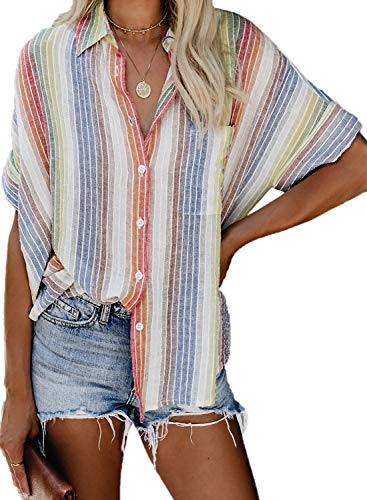 Aleumdr - Camicetta da donna, a righe, a maniche lunghe, con bottoni, taglia S-XXL