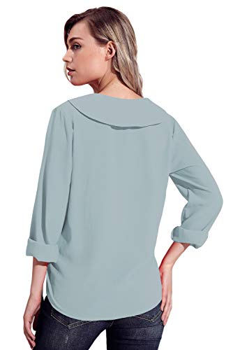 Aleumdr Camicia Donna in Chiffon Scollo a V Blusa Donna con Maniche Lunghe Tinta Unita Camicetta Donna Elegante - Blu Chiaro