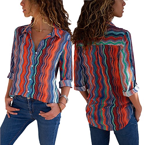 Aleumdr - Camicia da donna con scollo a V, a maniche lunghe, con bottoni, taglie S-XXL