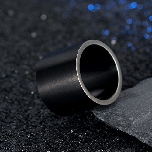 ALEXTINA Uomo 19MM Largo Acciaio Inossidabile Anello Avvolgere Pianura Band Piatto Tubo Taglio Nero Dimensione 32