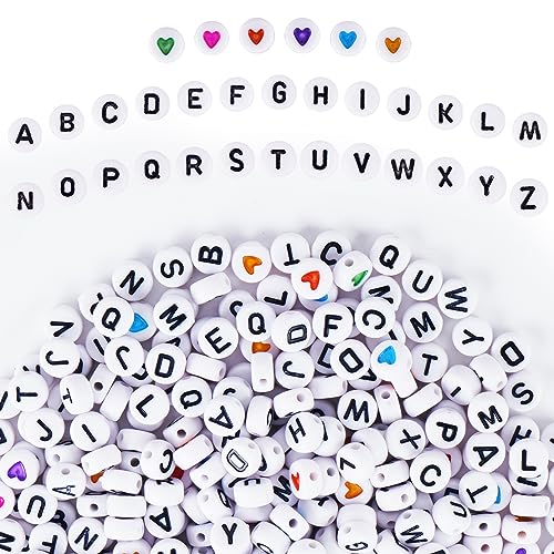 Alfabeti Perline per Braccialetti,1200 Pezzi A-Z Bianca Perline Lettere,Colorate Cuore Beads,Acrilico Alfabeti Perline,per Gioielli Fai da Te, Raccialetti, Collane, Bigiotteria, Anelli