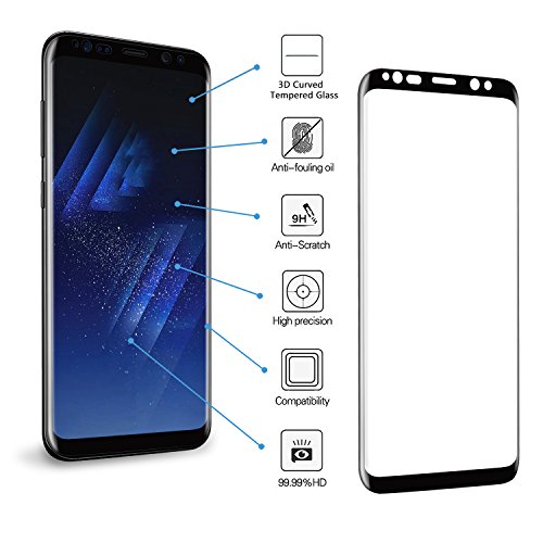 Alfort [2 Pezzi] Vetro Temperato Samsung Galaxy S8 Plus, Pellicola Protettiva 9H Durezza Ultra-Sottile Resistente Impermeabile Screen Protector per Samsung S8 Plus [ Copre intersmenre Schermo ] Nero