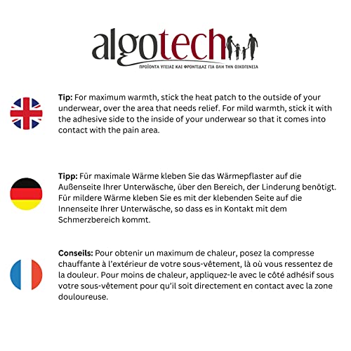Discreti e comodi - Il cuscinetto di calore dovrebbe essere attaccato al tuo pezzo di stoffa o di biancheria intima, non alla pelle. I cerotti riscaldanti terapeutici Algotreat per i dolori mestruali sono inodori e contengono ingredienti naturali (ferro, cartone, sale e acqua). Diventeranno i tuoi migliori alleati contro i dolori e crampi mestruali.