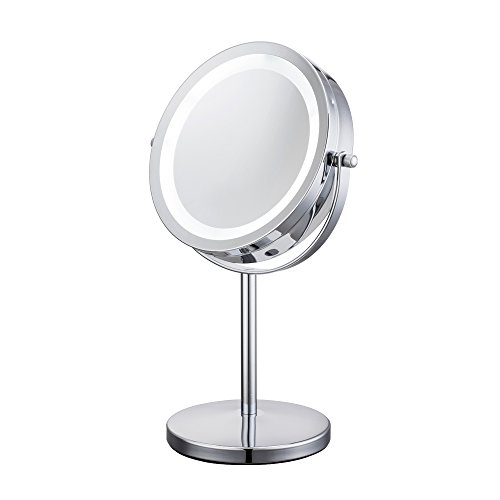ALHAKIN 360 ° girevole specchio cosmetico con illuminazione a LED e 1 ingrandimento / 10 volte, su due lati per camera 7 pollici tabella specchio con antiabbagliamento illuminazione / cromato / 17pcs di illuminazione a LED