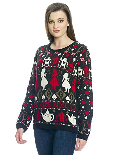 Alice in Wonderland Ladies Knitted Sweater Heart & Tea Size L NAPO Maglioni
