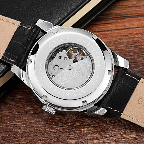 Alienwork Orologio Automatico Uomo Donna Scheletro Cinturino in Cuoio