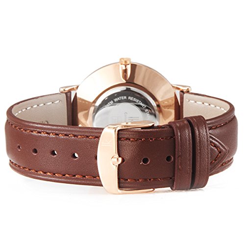 Alienwork IK Orologio Uomo Donna Oro rosa Bracciale in Cuoio Rosolare Bianco Ultra-sottile