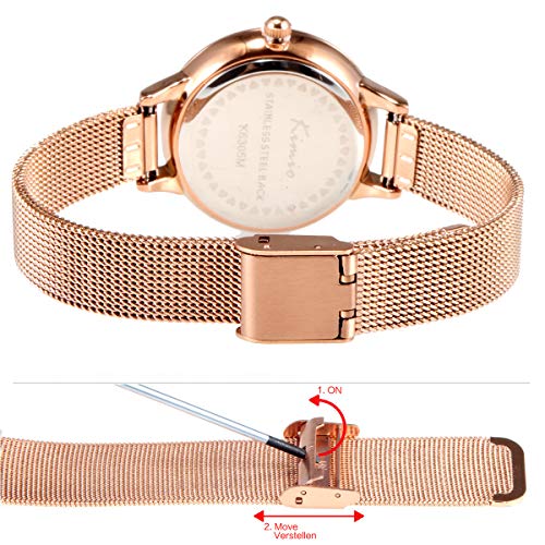 Alienwork Orologio Donna oro rosa Cinturino in Maglia Metallo rosso Classico Elegante