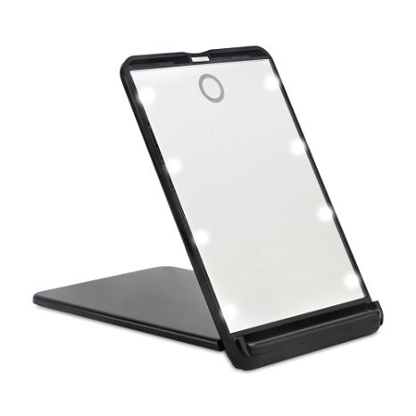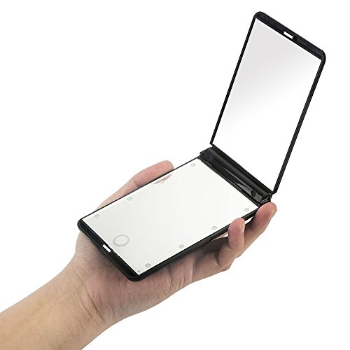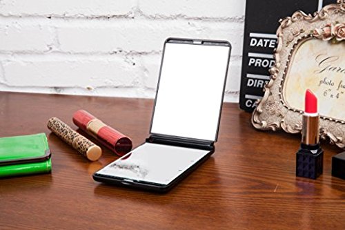 AlierKin Specchio cosmetico pieghevole,Trucco Tasca Specchio Con 8 LEDs, ingrandimento 1x/2x, compatto e portatile, Nero