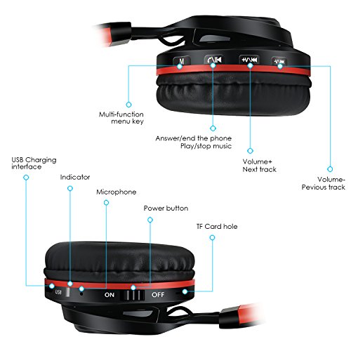 Alihen BT-06 Swift Bluetooth 4.0 cuffie stereo senza fili, Noise Cancelling In Ear Headset, microfono incorporato e controllo del volume, cavo audio in dotazione, compatibile con la maggior parte dei cellulari e laptop (Rosso)