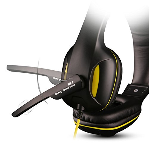 Alihen X-Factor Series X-5 2015 Nuove 3.5mm Stereo Gaming Over-Ear, fascia estensibile con cancellazione di rumore, controllo volume, microfono flessibile, Professional Music Cuffie da gioco e cuffie per il gioco online, il gioco per PC Computer, PC desktop, computer portatili, Compresse (Black/Yellow)