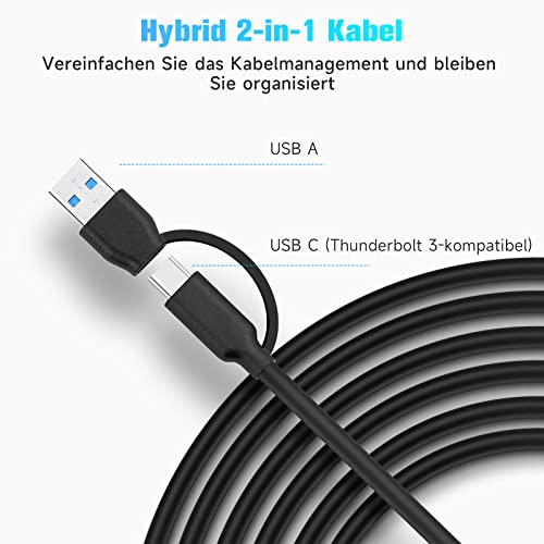 【2 in 1 USB Cavo】Hub USB C 3.2 Alimentato con cavo USB-A/USB-C 2-in-1 (100 cm), lunghezza sufficiente per pianificare la scrivania. Adattatori USB 2 in 1 compatibili con dispositivi USB-A/USB-C/Thunderbolt 3. Come Mac mini M1, MacBook, iMac, XPS, Surface Pro, ecc. Il multiconnettore USB A/C è compatibile con Windows 11, 10, 8.1, 8, 7, Vista, Mac OS 10, Linux e superiori.