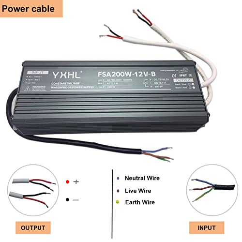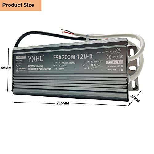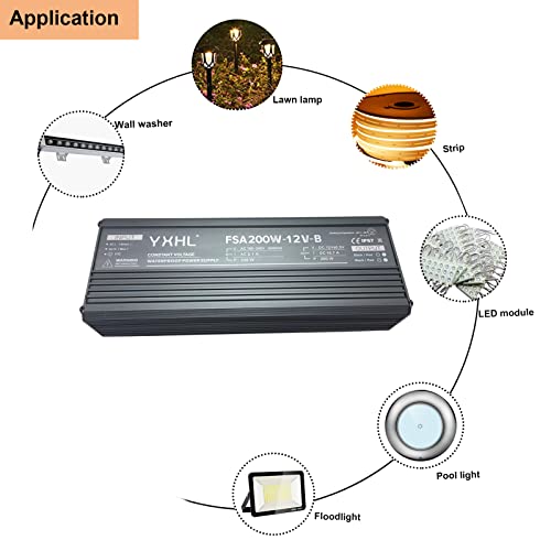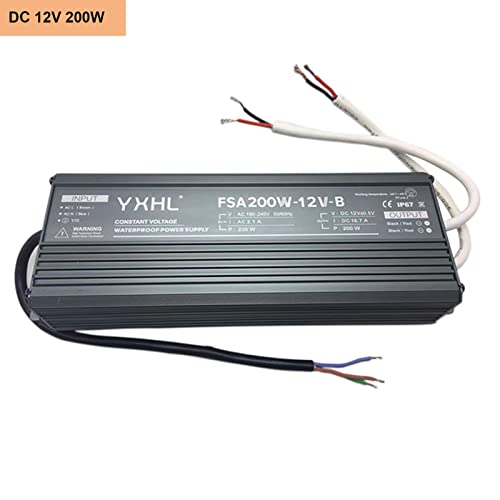 YXHL Alimentatore 200W DC 12V AC230V Led Driver Trasformatore Impermeabile IP67 Adatto per strisce LED, luce neon, luce piscina e lampade da prato all'aperto