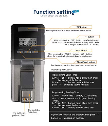 【Quantità di alimentazione regolabile】: l'alimentatore automatico di pesci utilizza un design aperto. È possibile aggiungere cibo per pesci senza rimuovere l'alimentatore del timer. Hai solo bisogno di spingere delicatamente l'apertura in alto per completare. E puoi decidere quanto cibo per pesci vuoi inserire in base al numero e alle dimensioni del pesce, e l'alimentatore ruoterà automaticamente di 360° per l'alimentazione all'ora impostata.