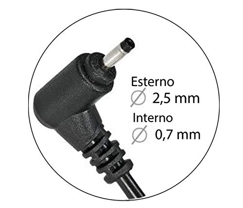 ★Specifiche★ Input: 100-240V | Output: 40W 19V 2.1A | Connettore: ext 2.5mm - int 0.7 mm. ★Avvertenze★ Prima di acquistare l'articolo oggetto dell'inserzione verificare preventivamente le indicazioni fornite dal retro del vostro PC (nella sezione in cui si descrive i Volt e gli Ampere che necessita) e del vostro alimentatore originale.