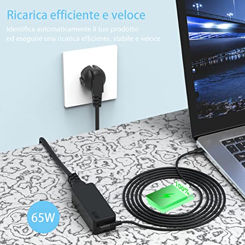 L'alimentatore di tipo C da 65 W è compatibile con molti prodotti. Se non trovi il modello del tuo prodotto, fai clic su "Fai una domanda" nel negozio del venditore nell'a