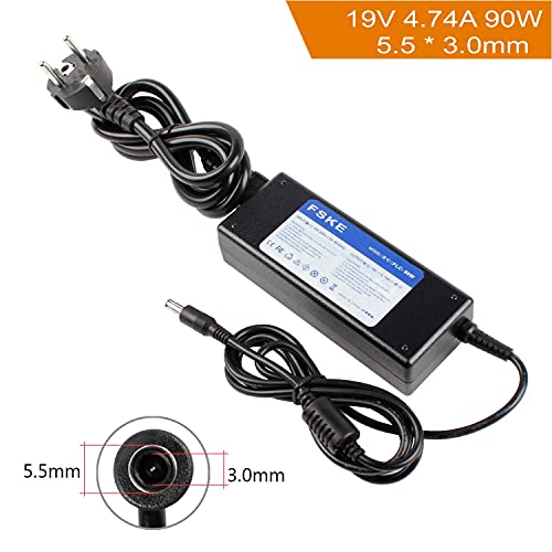 FSKE 90W 19V 4.74A Alimentatore Caricabatterie Computer Portatile Caricatore Power Supply Adattatore per Samsung NP300E5A NP350V5C R39 R540 R580 R530 R510 R522 R560 RV520 Notebook,EUR,5.5 * 3.0mm
