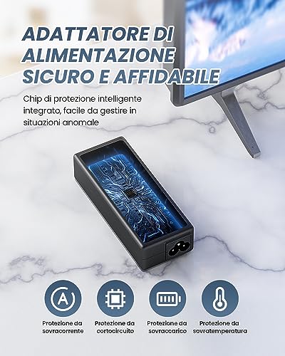 contenuto della confezione: 1 alimentatore di rete di ricambio e 1 cavo di alimentazione AC, sicurezza con protezione da sovratensione, protezione da sovracorrente, protezione da cortocircuito.