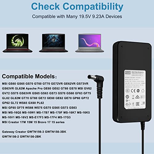 180W Alimentatore Caricatore per Gateway Creator GWTN156-3 GWTN156-2 MSI GF65 GF75 WS66 WS75 GS75 GS65 GS73 GS63 Creator 17M 15M 15 Bravo 17 15