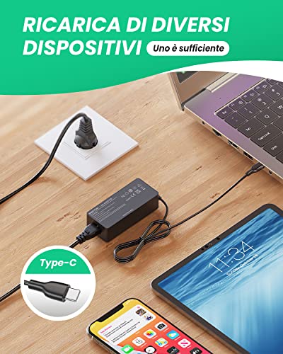 Ingresso: 100-240V~1,6A 50-60Hz, Usctita: 20V 3,25A, 20,3V=3A, 15V=3A, 12V=3A, 9V=3A, 5V=3A, Compatibile con Lenovo thinkpad, Lenovo Yoga, Dell Latitude, Dell XPS, Dell Inspiron, Samsung Chromebook, HP Spectre, Nintendo Switch, Acer, HUAWEI Caricabatterie