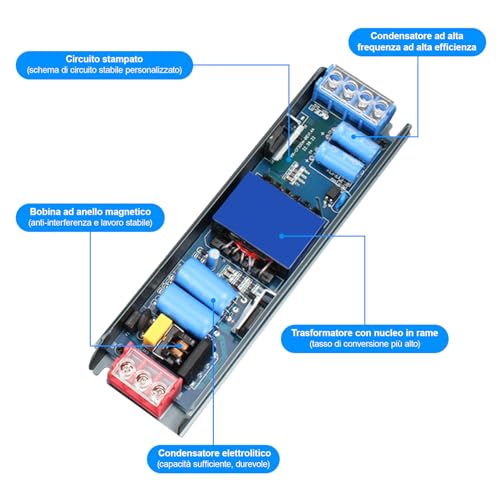 【Tensione costante DC 24V】: la tensione di uscita di questo alimentatore LED è DC 24V. Confermare che la potenza (150W) sia inferiore o uguale all'alimentazione nominale, altrimenti potrebbe bruciarsi.