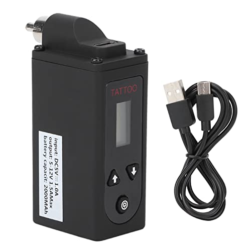 Alimentatore per Tatuaggi Cordless, Connessione CC e RCA Wireless Tattoo Alimentazione a Batteria al Litio da 2000 mAh con Display LCD Alimentatore per Tatuaggi a Tensione Regolabile 8V 10 Ore(RCA)