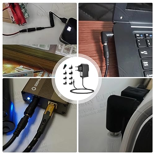 Sicurezza e durata: Alimentatore universale - Sovratensione/Sovracorrente/cortocircuito/sovraccarico/sovratensione Sistema di protezione caricato, senza ventola e rumore, certificato CE/FCC/DoE VI di alta qualità. «5,5 mm x 2,1 mm» indica che il diametro interno del connettore CC è di 2,1 mm e il diametro esterno è di 5,5 mm. 8 suggerimenti: 2,5 x 0,7 mm/3,0 x 1,1 mm/3,5 x 1,35 mm/4,0 x 1,35 mm/4,0 x 1,7 mm/4,8 x 1,7 mm/5,5 x 2,5 mm/interfaccia LED.