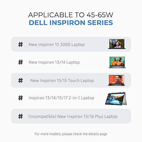 KFD 65W 19,5V Alimentatore per XPS 11 12 13 15 Vostro 3000 5000 Inspiron 11 12 13 15 17 Inspiron 14 15 3551 7569 7579 3147 3153 Optiplex 3020 DC19,5V 3,34A 2,31A Notebook PC Adattatore Caricabatterie