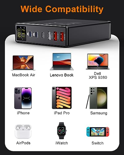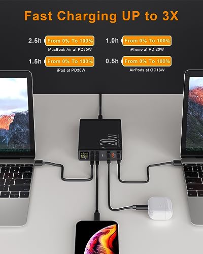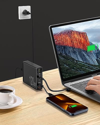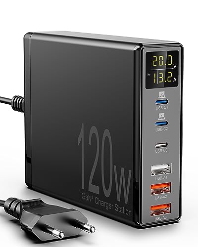Alimentatori Caricatore USB C, Binamao 120W Caricatore USB Multiplo 6-Port Caricabatterie USB C Rapido con LED Schermo, GaN Stazione di Ricarica USB Multipla per MacBook Air, Phone, Pad, Samsung