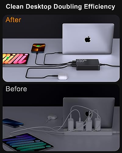 【6-Port Alimentatore USB C Rapido】Eleva la tua routine di ricarica con una velocità senza pari. Ammira la straordinaria capacità di caricare il tuo iPhone 14 Pro Max dallo 0% a un notevole 70% in soli 30 minuti! I nostri innovativi porti USB-C da 65W ridefiniscono la velocità, dando a te il potere di cogliere la giornata come mai prima.