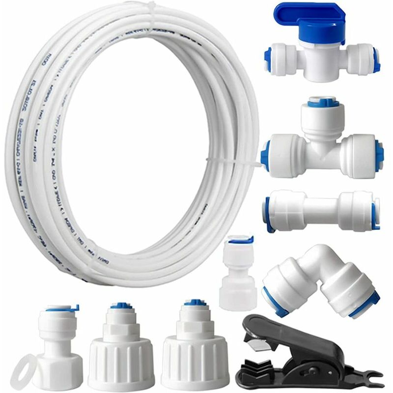 Ambito di fornitura - Come mostrato 【Tubo flessibile dell'acqua onnipotente】Fornisce acqua a frigoriferi, sistema di filtrazione ad osmosi inversa (RO), produttori di ghiaccio, refrigeratori e distributori d'acqua, umidificatori e altro ancora . 【Materiali durevoli】 Tubi di alta qualità con resistenza all'invecchiamento, resistenza alle crepe, resistenza alle basse temperature, resistenza al calore, resistenza alla corrosione e resistenza agli urti. 【Facile da installare】 Azionamento a connessione rapida parti per una facile installazione fai-da-te senza attrezzi. Tutti gli articoli di questo kit sono realizzati secondo le specifiche più elevate.< /li> 【Altamente compatibile】Adatto per la maggior parte dei tipi di frigoriferi, come i modelli realizzati da: Samsung, Bosch, Miele, LG, Daewoo, Siemens, Neff e molti altri. Descrizione prodotto Kit di collegamento per acqua dolce Sistema di filtrazione ce 1. Contiene tutti gli adattatori per collegarlo al rubinetto di alimentazione, vengono