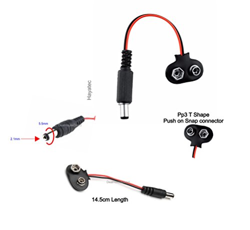 2x 5x 10x PP3 9V cavo di alimentazione della batteria - 9V PP3 clip di batteria a 2,1 millimetri DC presa jack per Arduino CCTV Elettronica del veicolo ( pacchetto di 5) - HAYATEC